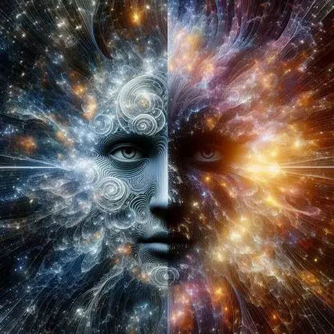 L’âme grimpe vers la lumière, fuyant l’obscur, jusqu’à entendre l’appel inverse : celui de la densité. Dans cette descente, la véritable alchimie opère — non dans la séparation, mais dans la rencontre. Corps multiples, mondes parallèles, lumière et ombre s’unissent pour révéler une vérité incarnée : l’unité au cœur de la fiction.